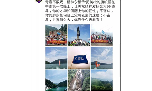 此次組織員工旅行活動是美松公司構(gòu)建企業(yè)文化、培養(yǎng)人才隊伍、完善激勵機制的重要舉措之一,同時也實踐了美松“認真工作,享受生活”的意義,不僅陶冶了員工情操、增強了集體凝聚力,使員工以更飽滿的熱情投入到今后的工作中去,共同為美松發(fā)展做出更大的貢獻。