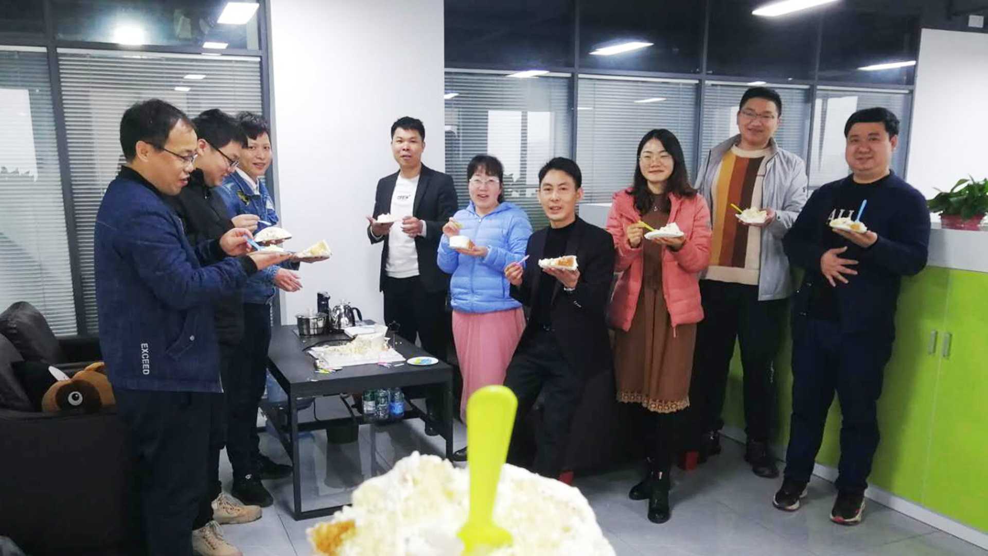 美好的時(shí)光總是短暫的,但心中記憶卻是永恒的。在今天這個(gè)特殊而又富有意義的日子,同事們彼此分享蛋糕的同時(shí),用笑容傳遞出的青春味道,甜蜜而美好!也為一整天的辛勤工作悄然劃上一個(gè)喜悅而又圓滿的句號(hào)!