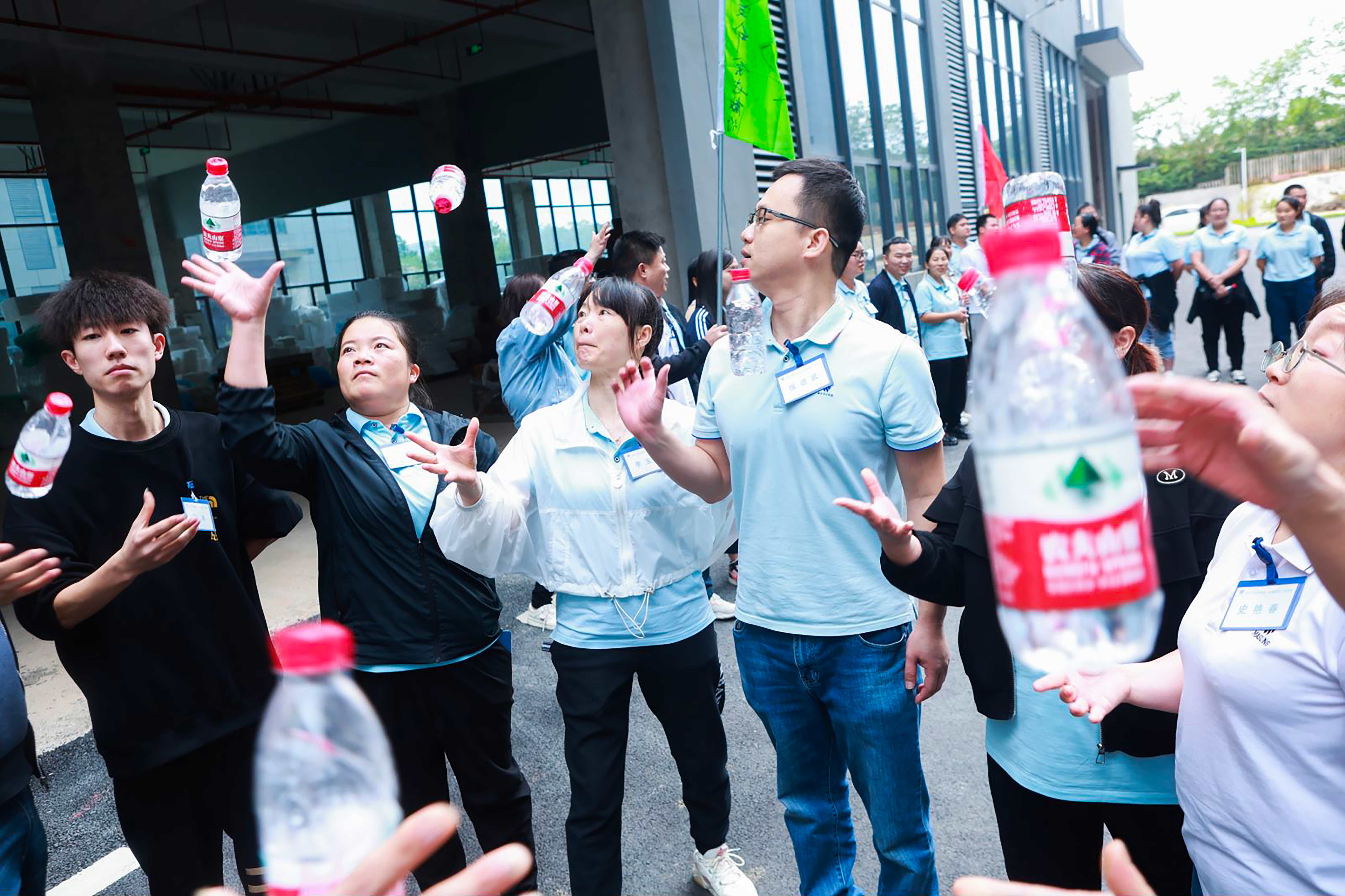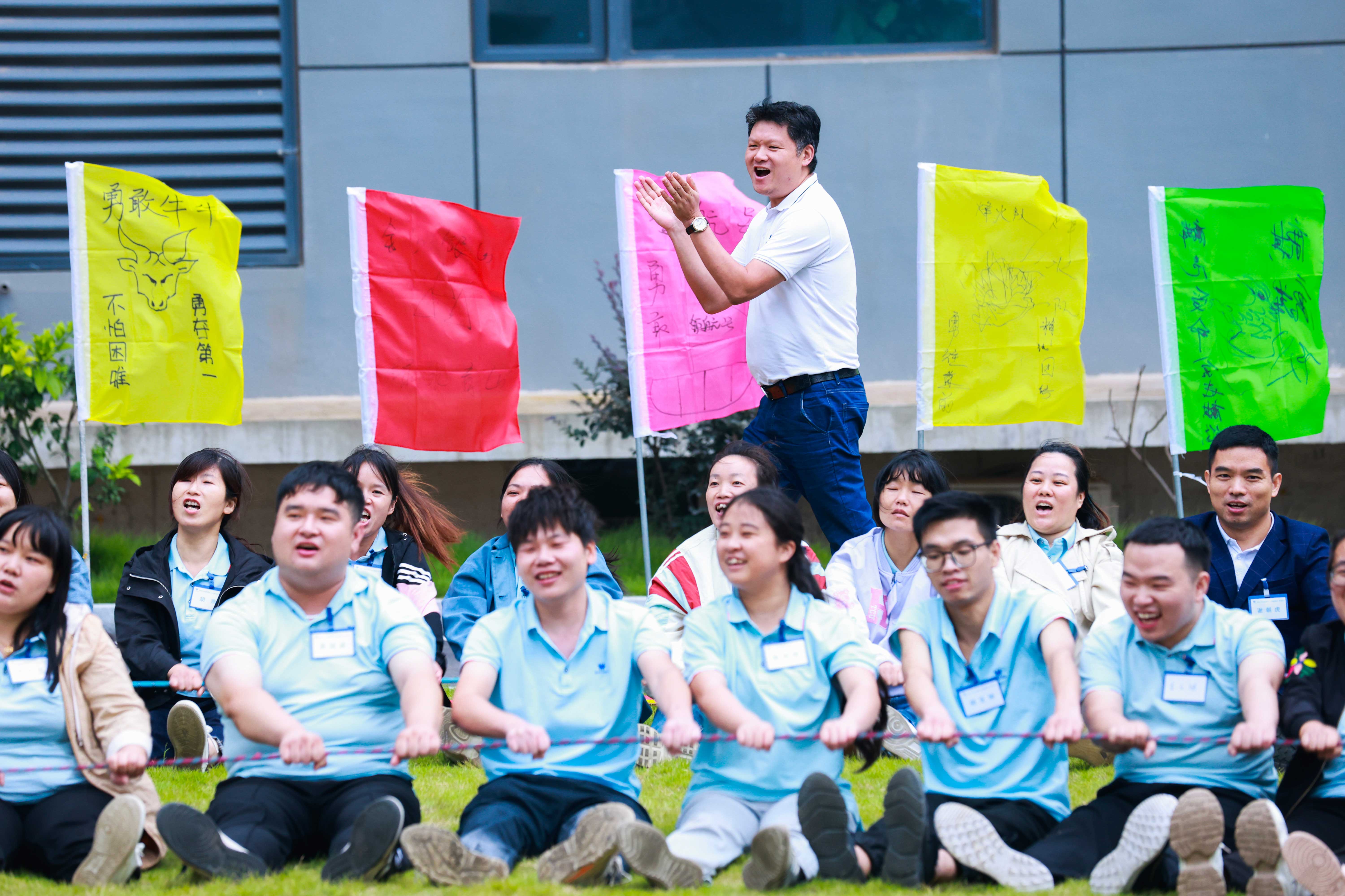 “能量動力圈”項目將活動推向高潮,大家激情澎湃,斗志昂揚,16支隊伍200余人緊緊的聚攏圍圈在一起,緊握首尾相連的繩子并用力拉緊保持圓形,按教練的要求整齊劃一地?fù)u圈若干次,挑戰(zhàn)每個人的極限,從開始不及格的100個到成功挑戰(zhàn)666個的卓越表現(xiàn),讓我們看到了團(tuán)隊的震撼與力量。我們都知道螞蟻可以負(fù)重三十幾倍的自身重量,而我每個成員就像一只只螞蟻一樣充滿了無限的力量和潛能,當(dāng)我們每位員工在前方?jīng)_鋒陷陣的時候,背后都有一個強大的團(tuán)隊為他分擔(dān)重量。熔煉團(tuán)隊的過程,不僅提高了我們團(tuán)隊的凝聚力、向心力、責(zé)任感、100%執(zhí)行力,而且還增加我們所有員工之間的信任感與相互理解包容,團(tuán)隊與團(tuán)隊之間的互相協(xié)作精神也得到了升華。克服人性弱點,決不放棄直到成功為止,為團(tuán)隊共同目標(biāo)的實現(xiàn)而努力奮斗!這過程更是感動的不僅是我們團(tuán)隊的每一位成員,更有場外的董事長陳斌先生,也親臨現(xiàn)場為我們的所有團(tuán)隊助陣吶喊鼓掌!