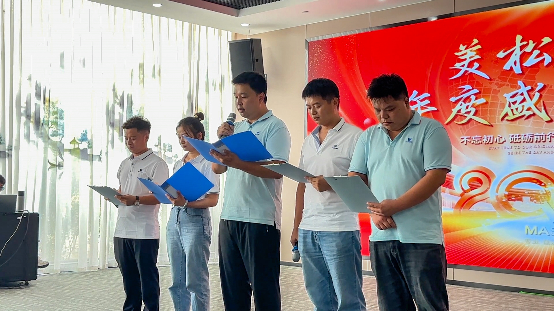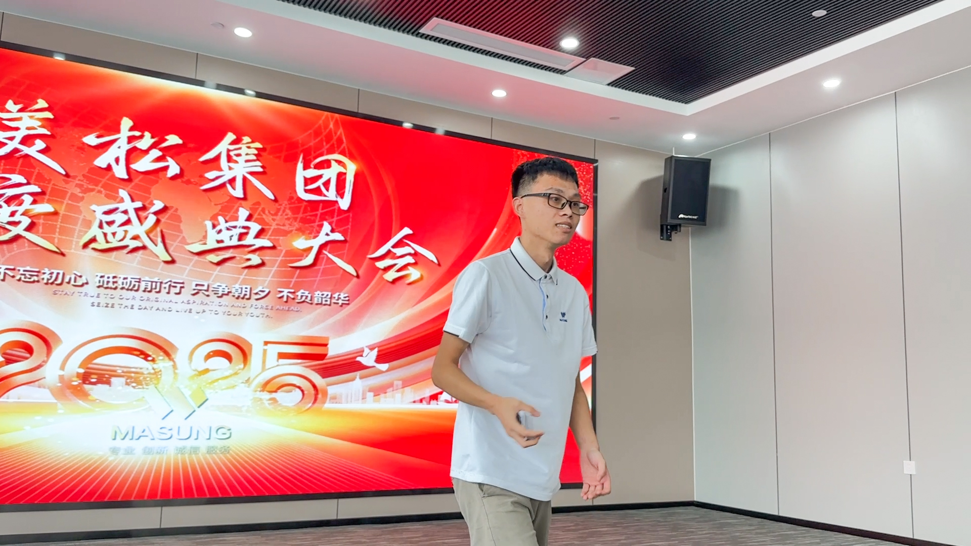 在第19個(gè)節(jié)目表演結(jié)束后評(píng)委緊張的打分間隙,舞臺(tái)聚焦落在了美松集團(tuán)總經(jīng)辦coco身上,她的成長(zhǎng)故事更是點(diǎn)燃全場(chǎng)。這位在美松深耕15年的老員工,用歸屬感,價(jià)值感與成長(zhǎng)空間與美松共生,這份榮譽(yù)與歲月的積淀,使她的發(fā)言格外具有穿透力。她以真誠(chéng)的語(yǔ)氣回顧自己從初入美松的青澀,到如今肩負(fù)重要管理職責(zé)的自信旅程;也見證了公司從10來(lái)人的團(tuán)隊(duì)發(fā)展至今,在行業(yè)內(nèi)具有一定影響的力量;從點(diǎn)滴崗位成長(zhǎng)到跨部門協(xié)同推進(jìn),從個(gè)人素養(yǎng)的持續(xù)提升到對(duì)公司愿景的堅(jiān)定擁護(hù),這些分享如同一面鏡子,照見了無(wú)數(shù)同事的努力與堅(jiān)持。她動(dòng)情的從“責(zé)任、信任、情懷、堅(jiān)定“四個(gè)維度展開與美松人的成長(zhǎng)節(jié)點(diǎn),也表達(dá)了對(duì)未來(lái)的無(wú)限期待。只有大家保持初心持續(xù)學(xué)習(xí)才能將美松MASUNG品牌,美松的打印機(jī)產(chǎn)品,美松的完美服務(wù)帶向新的高度!最動(dòng)人心弦的一幕,是她對(duì)“認(rèn)同感與共同成長(zhǎng)”的真摯呼喊——愿越來(lái)越多的美松人愿意和她一樣,認(rèn)可美松、信任美松、與美松共同成長(zhǎng)。當(dāng)coco問(wèn)起現(xiàn)場(chǎng)美松人,是否愿意跟她一樣,與美松一起成長(zhǎng),5年,10年,20年,30年時(shí),掌聲雷動(dòng)之中聽到的都是回應(yīng)聲:“好”!