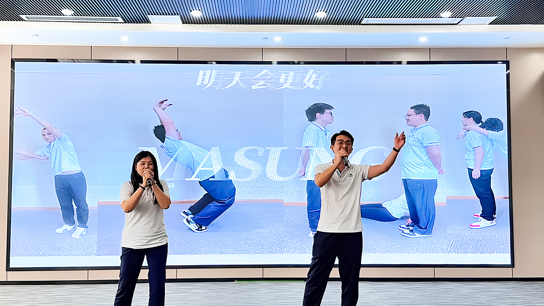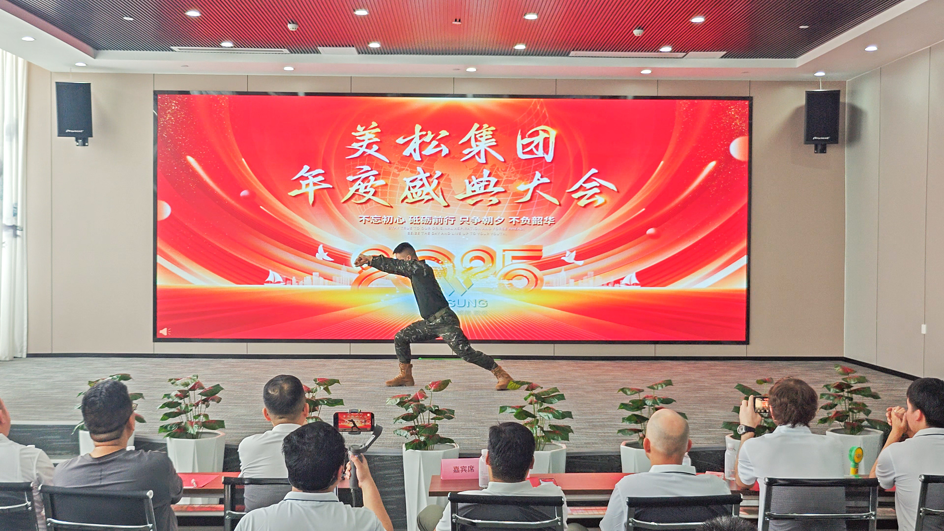 整場(chǎng)節(jié)目表演活動(dòng)都以“成長(zhǎng)”為主線,貫穿美松個(gè)人成長(zhǎng)、美松組織成長(zhǎng)與打印機(jī)行業(yè)成長(zhǎng)三位一體,強(qiáng)調(diào)“專業(yè)、創(chuàng)新、誠(chéng)信、服務(wù)”的美松價(jià)值文化。璀璨舞臺(tái)上,一場(chǎng)跨越時(shí)空的視聽盛宴《無(wú)價(jià)烙印與美松傳承》-以負(fù)責(zé)人coco的身份獨(dú)白故事展開的一部震撼的宣傳片,通過(guò)光影交織的鏡頭語(yǔ)言,帶領(lǐng)觀眾穿越美松的成長(zhǎng)歷程,19年的風(fēng)雨路程提醒著我們,真正的傳承不是停留在口號(hào),而是在每一天的細(xì)微行動(dòng)中繼續(xù)前行。無(wú)論是資深老員工,還是新加入的同事,都將在一起,把夢(mèng)想變成可感知的現(xiàn)實(shí)。以“恒進(jìn)”的步伐,致敬那些日常里追求極致的人;以堅(jiān)定的信念,迎接每一個(gè)新的挑戰(zhàn);因?yàn)橹灰覀兺?,必將勾勒出“匠心鑄就信賴”的美松品牌內(nèi)核:明天會(huì)更好!隨著音樂(lè)的響起,全體美松人都加入了和聲,歌聲中既有對(duì)過(guò)往合作的感恩,也有對(duì)未來(lái)共贏的期許.“讓我們的笑容充滿著青春的驕傲,為明天獻(xiàn)出虔誠(chéng)的祈禱!”大屏幕同步播放員工們自發(fā)用人體藝術(shù)形式展示的“MASUNG”LOGO珍貴影像,將現(xiàn)場(chǎng)氛圍推向高潮。這不僅是一場(chǎng)藝術(shù)盛宴,更是美松人對(duì)美松的深情告白:“無(wú)價(jià)烙印”象征著每個(gè)美松人與美松的深厚情誼;“美松傳承”寓意著未來(lái)攜手共進(jìn)的堅(jiān)定承諾。而“無(wú)價(jià)烙印與美松傳承”更是我們美松打印人的合作價(jià)值與美松精神。
