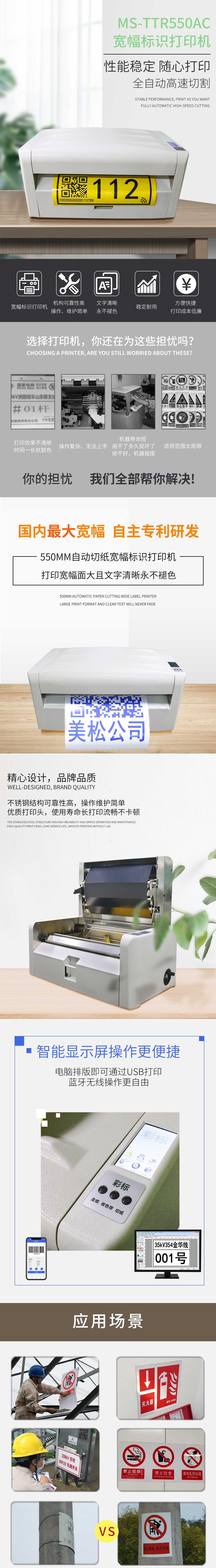美松MS-TTR550AC熱轉(zhuǎn)印標(biāo)識標(biāo)牌打印機是針對寬橫幅印刷且自動切割的設(shè)備.熱轉(zhuǎn)印設(shè)備能打印pvc不干膠紙,pvc標(biāo)簽紙,pvc標(biāo)牌紙,pvc電纜標(biāo)牌,復(fù)合材料封面,熱轉(zhuǎn)印機采用碳帶熱轉(zhuǎn)印方式打印,打印幅面大且文字清晰耐刮永不褪色.電腦排版完即可通過USB打印無需制版,方便快捷.機構(gòu)可靠性高,操作,維護(hù)簡單.