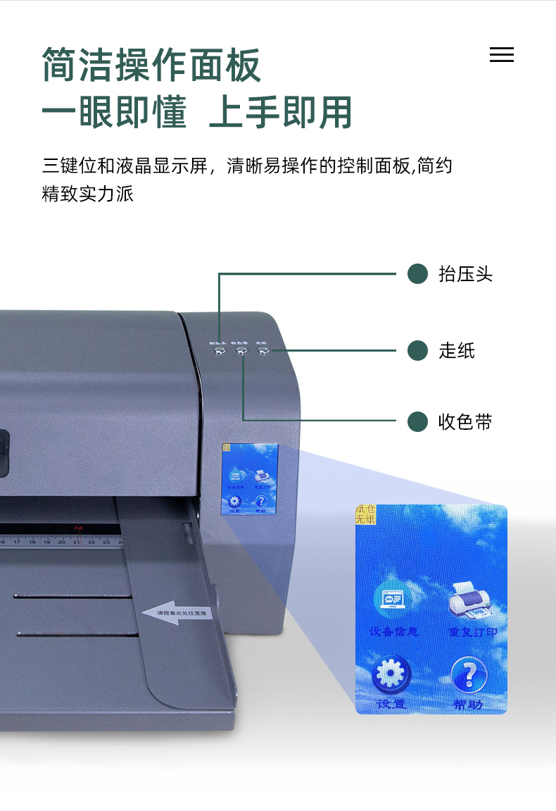 7.抬壓頭設(shè)計(jì),換碳帶操作簡(jiǎn)單快捷,非常適合在票務(wù)中使用。