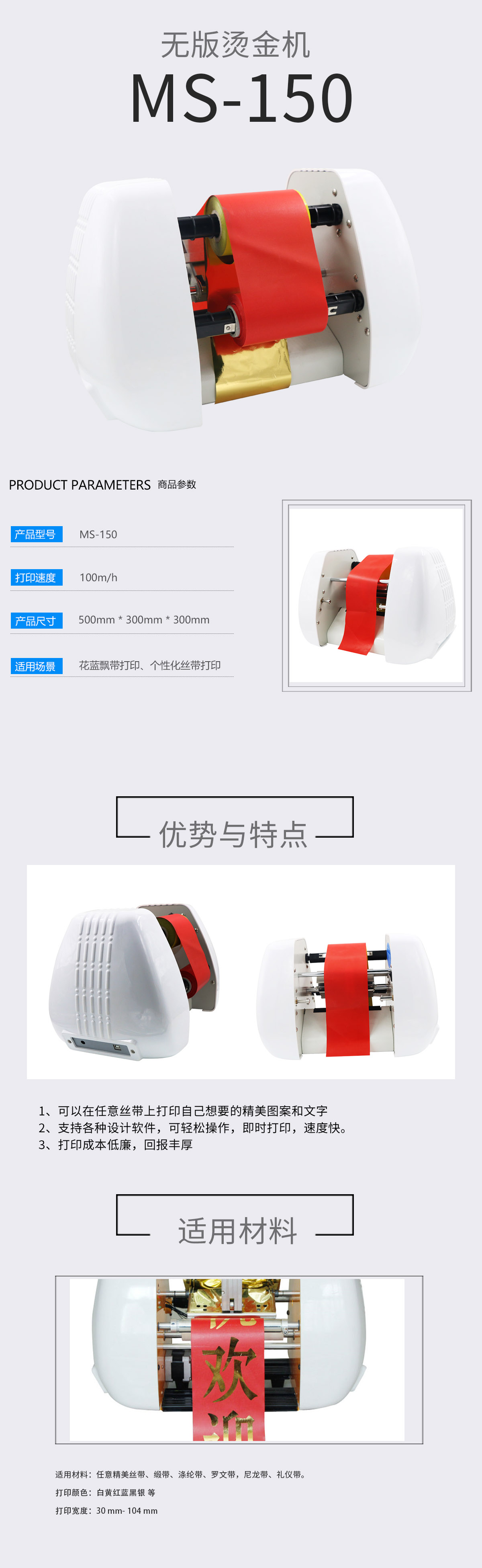 美松全自動(dòng)絲印機(jī) 1.體積?。ㄗ烂鏀[設(shè)) 2.速度快(是普通打印機(jī)的5倍) 3.打印成本超低,每條僅需3毛線 4.任意在絲帶上打印精美的圖案,文字,標(biāo)志 5.超寬的打印幅度,可滿足不同客戶的需求 6.采用進(jìn)口高精度,防靜電,防劃傷打印頭,經(jīng)久耐用 7.邊排版邊打印,現(xiàn)打現(xiàn)用,方便快捷 8.支持各種軟件設(shè)計(jì),可輕松操作即時(shí)打印