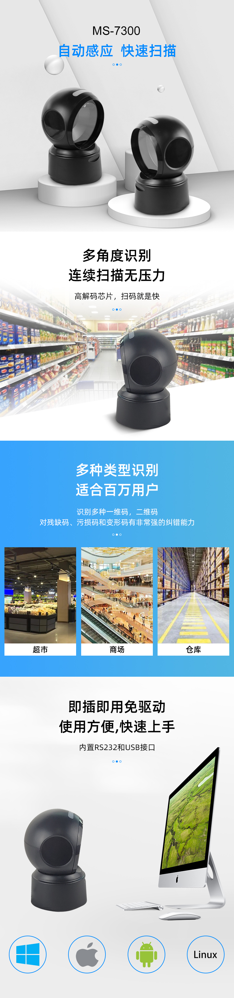 1、卓越的一維/二維條碼識(shí)讀性能 ,4M/S超高速運(yùn)動(dòng)容差 2、IP52 防塵等級(jí);1.2米抗跌落 3、支持USB和RS232接口 4、支持紙質(zhì),薄膜類,商品碼,付款碼讀取 5、支付寶開票碼、國(guó)稅開票碼、航天信息、百旺金賦開票, 微信開票助手,閃電開票