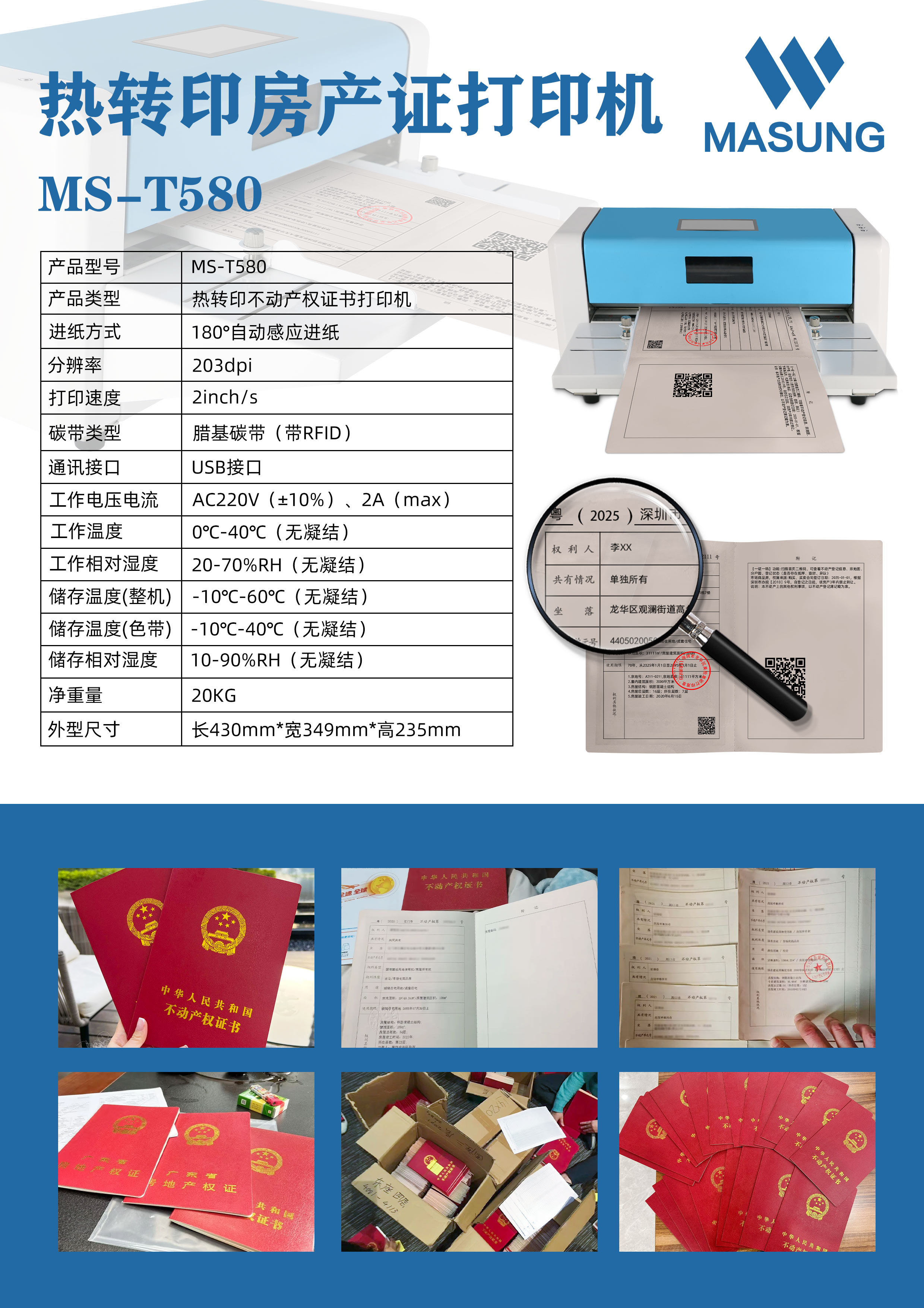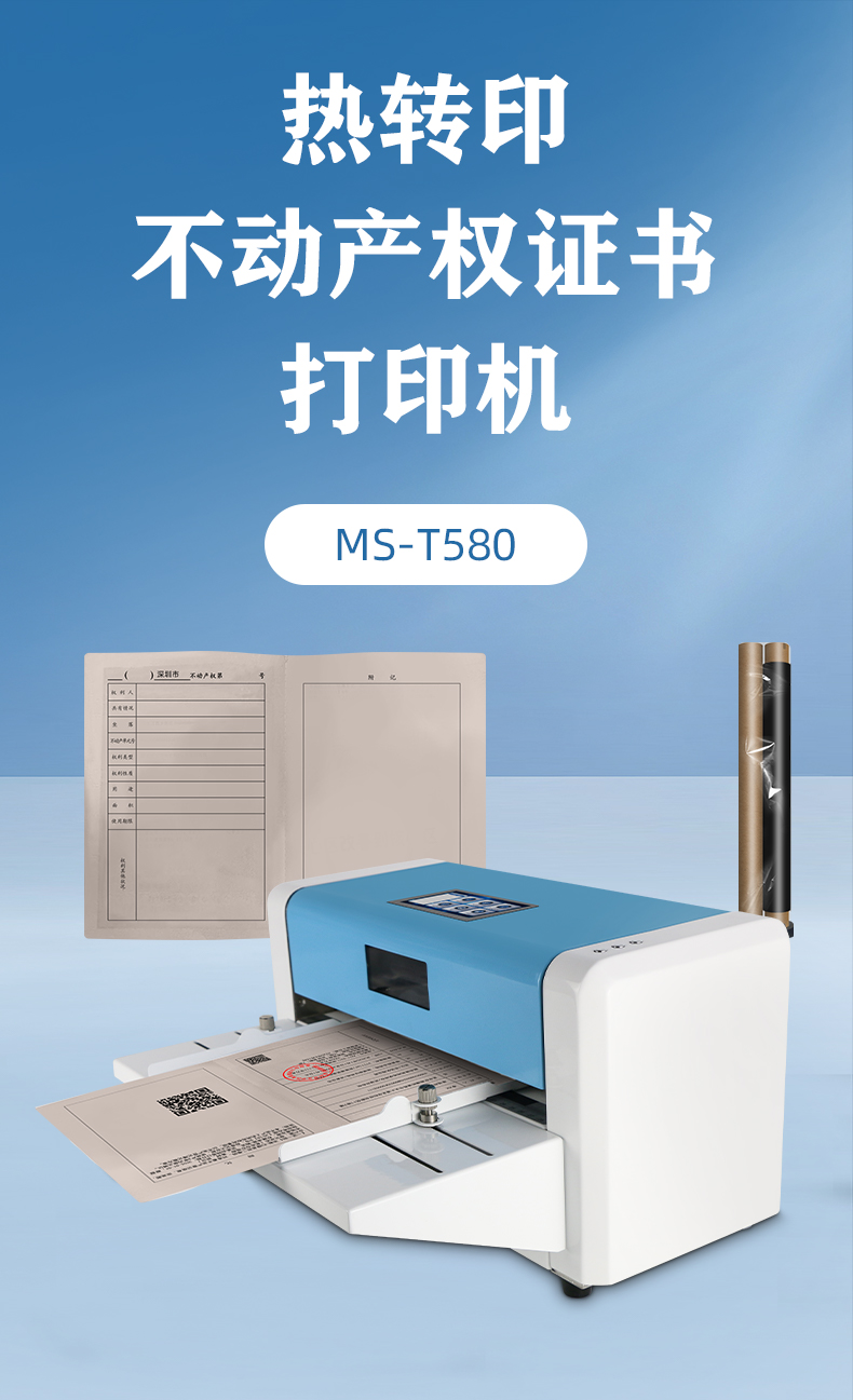 MS-T580_熱轉(zhuǎn)印不動(dòng)產(chǎn)權(quán)證書打印機(jī)是由美松自主研發(fā)的新型熱轉(zhuǎn)印行業(yè)打印機(jī),主要應(yīng)用于熱轉(zhuǎn)印打印不動(dòng)產(chǎn)權(quán)證書打印,打印的技術(shù)成熟穩(wěn)定,可快速的進(jìn)行打印,打印的文字和圖像清晰明亮,不輕易褪色。