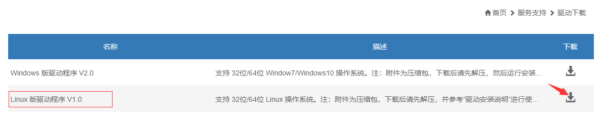 選擇 Linux 版驅(qū)動程序,然后點擊下載。