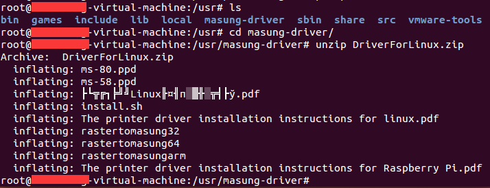 進(jìn)入 masung-driver 目錄,然后使用 unzip 命令解壓驅(qū)動程序。