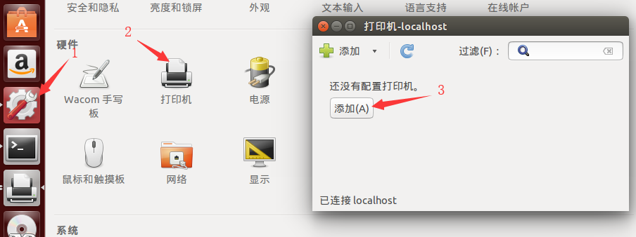 1打開系統(tǒng)設(shè)置,2點擊打印機(jī),3點擊添加。