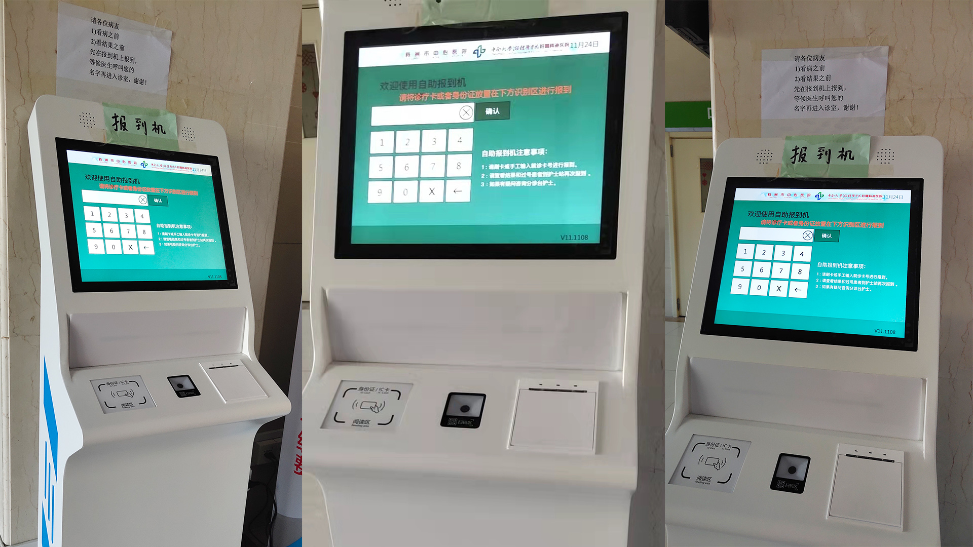 醫(yī)療排隊(duì)報(bào)道機(jī)配置智能顯示屏、打印機(jī)等,其作用主要是提供智能高效的就醫(yī)體驗(yàn),減少醫(yī)院運(yùn)營(yíng)成本。自助報(bào)道機(jī)幫助患者依次排好隊(duì),等候醫(yī)生的呼號(hào)。報(bào)道方式支持刷卡或者手工輸入就診卡號(hào)進(jìn)行報(bào)道兩種方式,為就醫(yī)提供了快速的服務(wù)。
